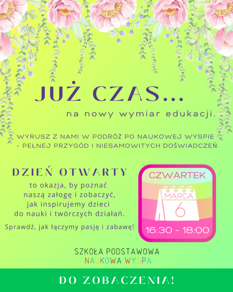 Edukacja w przyjaznej atmosferze. Stawiamy na współpracę, poczucie bezpieczeństwa oraz wsparcia w podejmowanych działaniach. Zwiększamy wymiar godzin, organizujemy twórcze zajęcia popołudniowe, a nasze klasy są małoliczne.